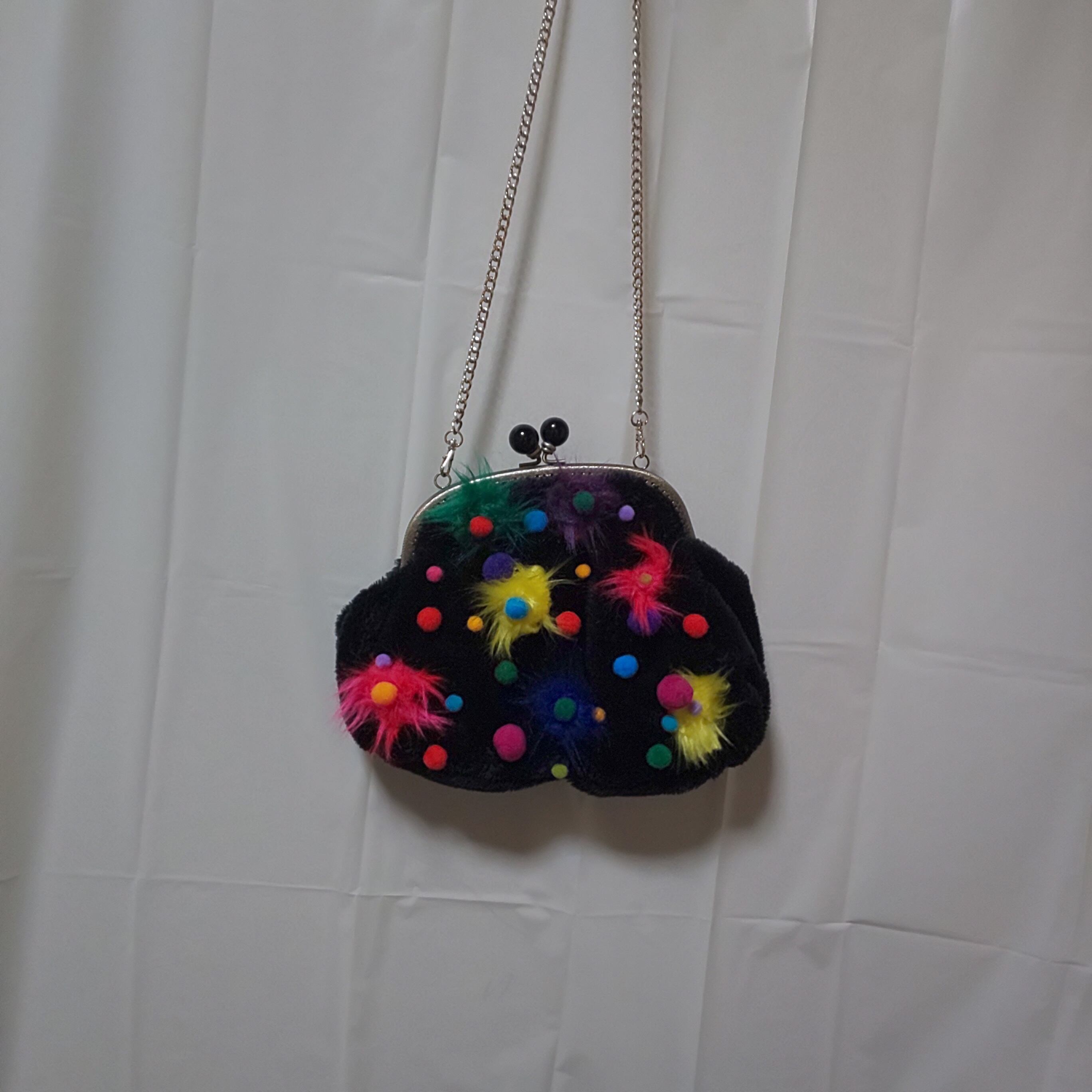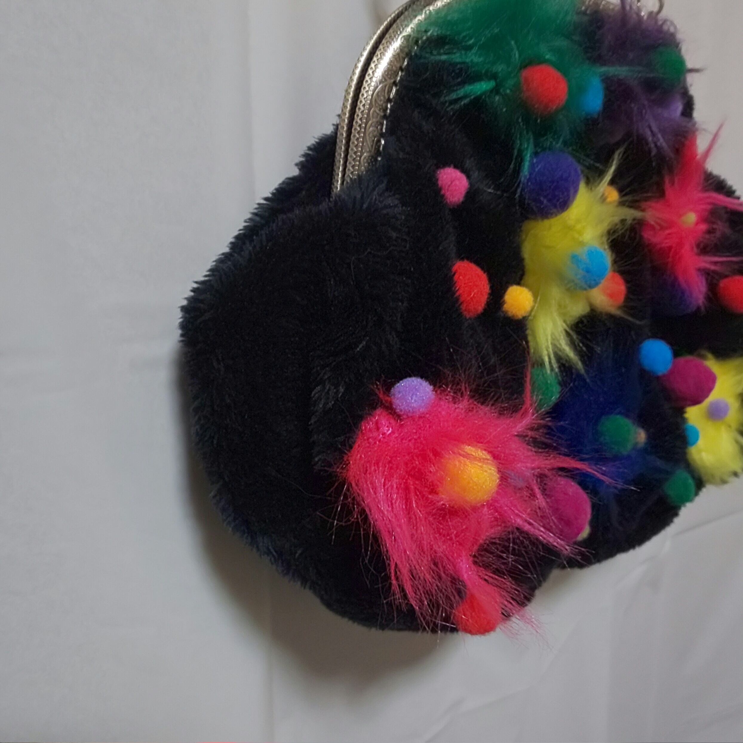 ボンボンフラワー ボアがま口バッグ