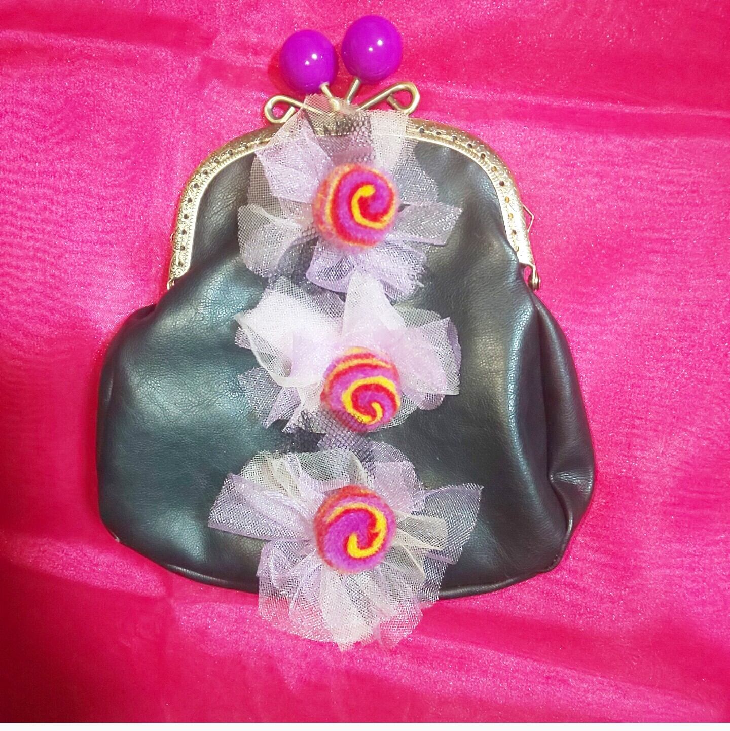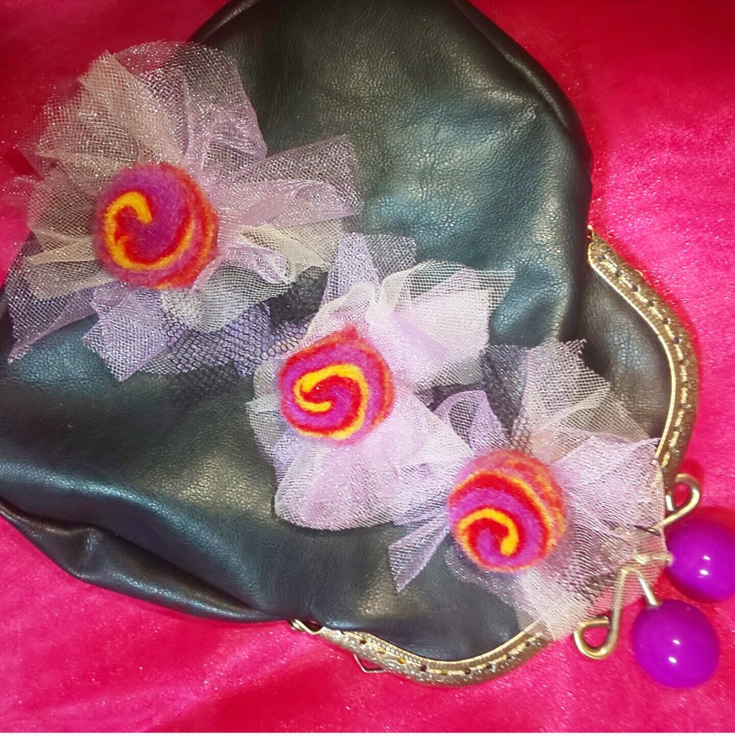 チュールと羊毛のフェルトボールのお花がポイント☆