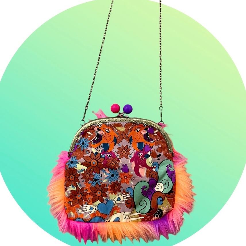 トライラスト ファーがま口バッグ