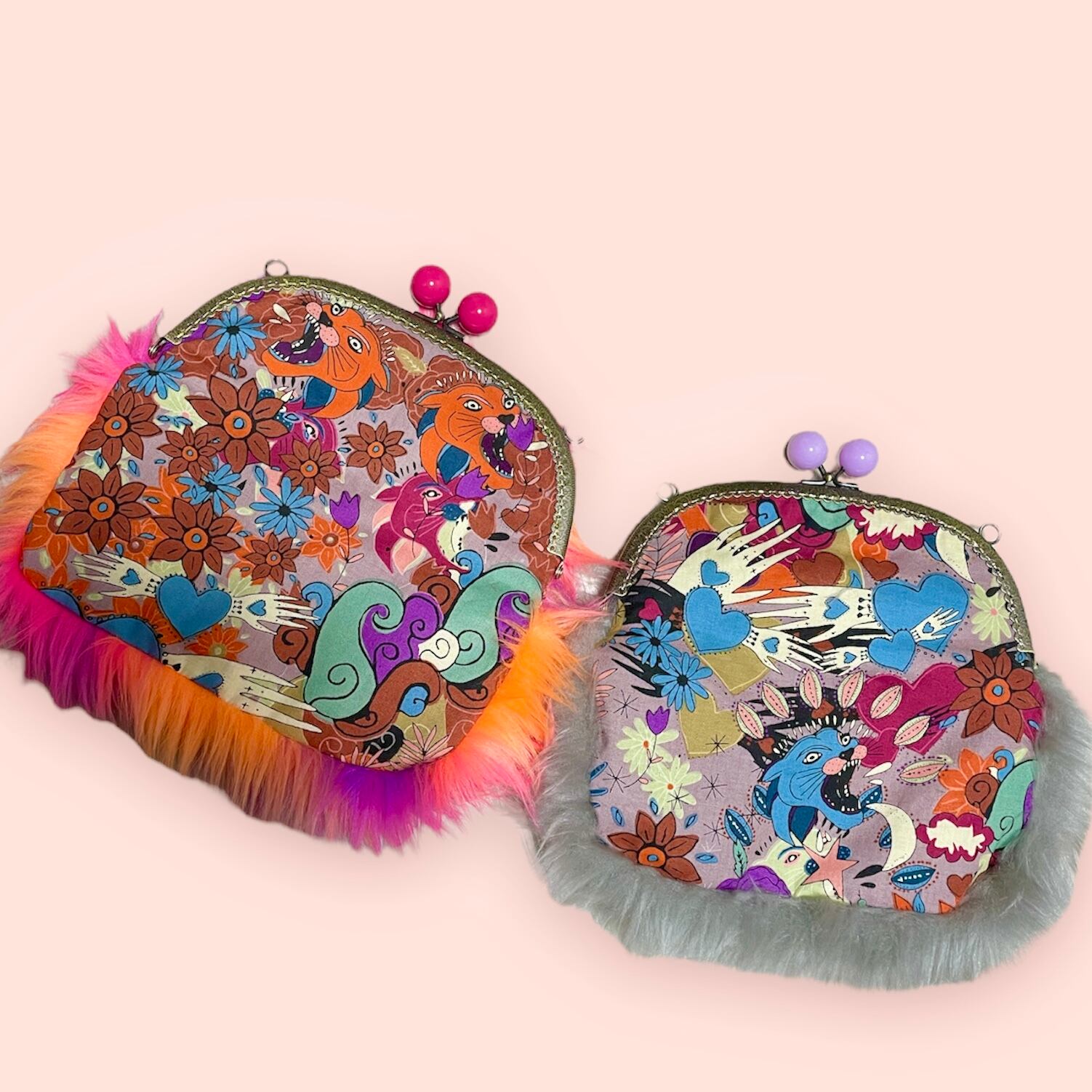 コミカルながま口バッグ2種。