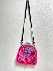 ピンクが目立つファーがま口バッグ。
