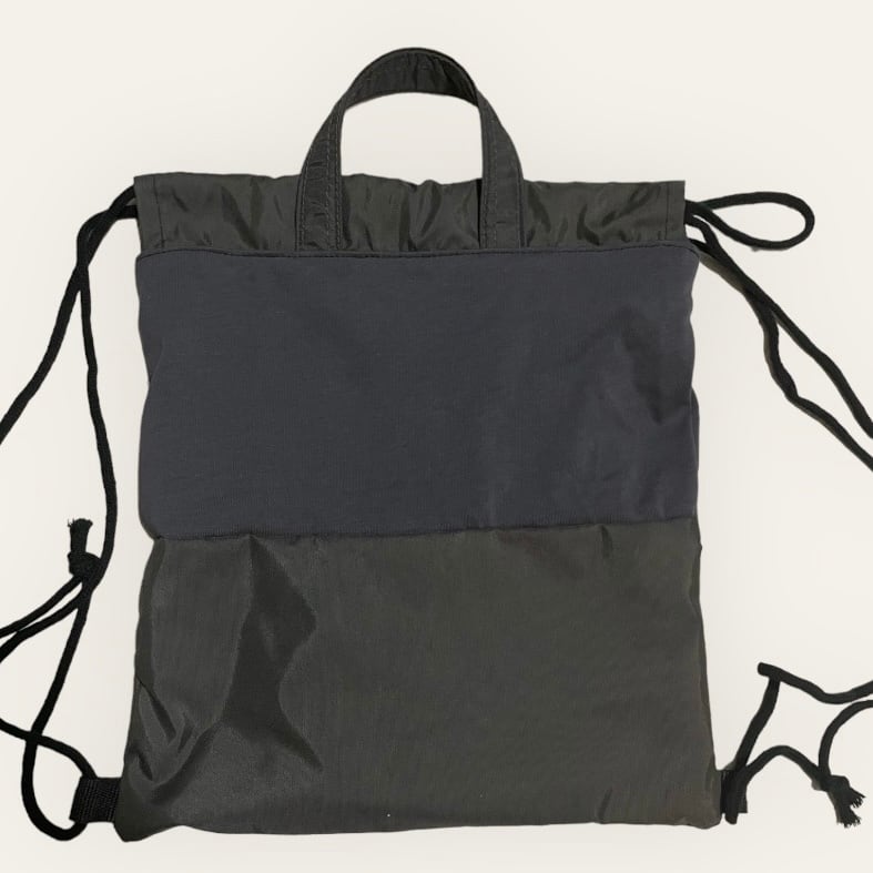 カット素材(チャコール)とナイロン(カーキ)のバイカラー