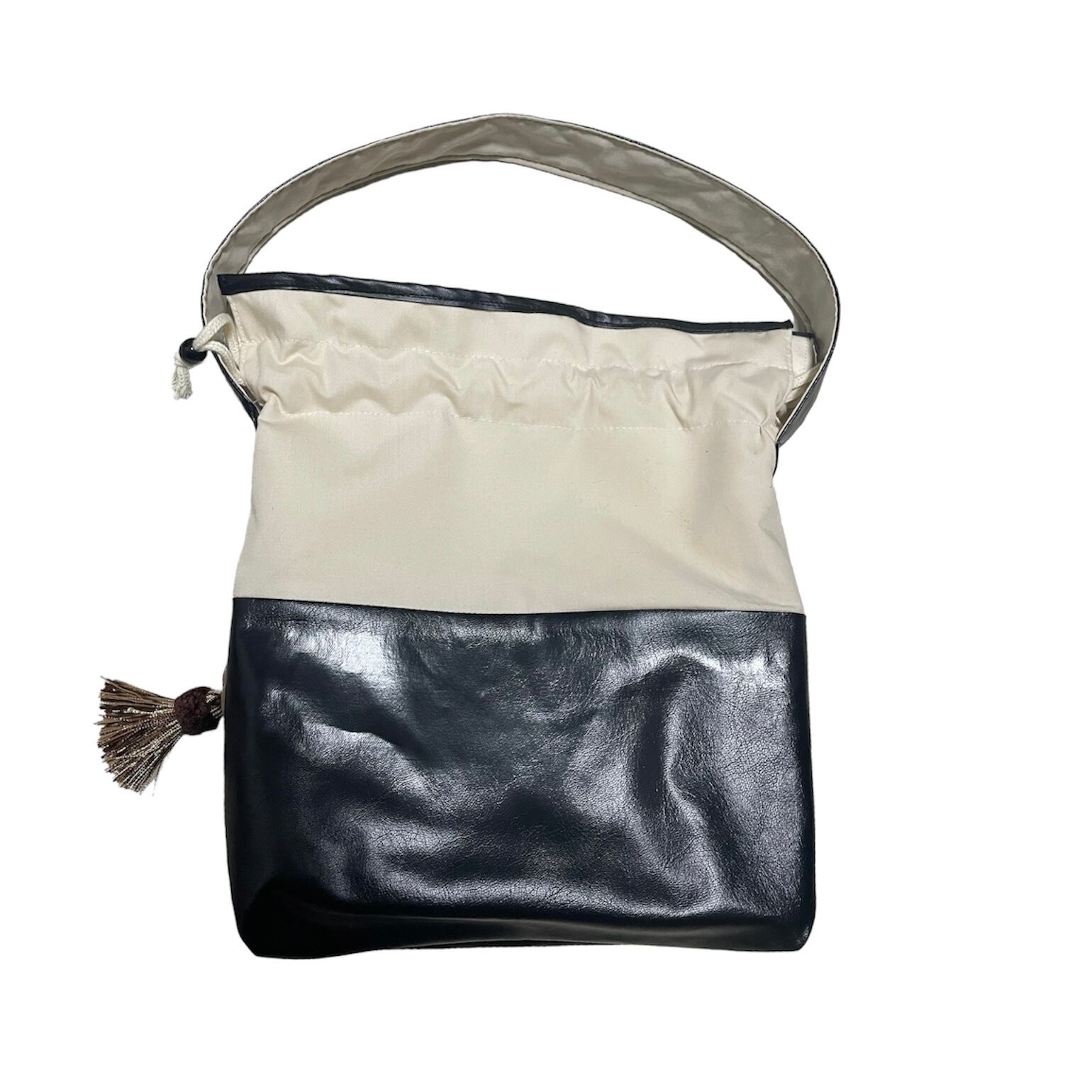 puレザーと生成りのシックな配色◎